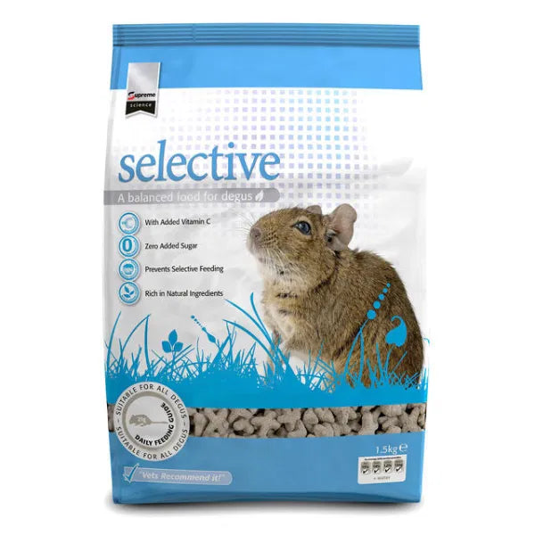 Supremescience Selective Degu Is A Unique Baked Diet, Formulated To Meet The Special Nutritional Requirements Of Degus. This Carefully And Scientifically Chosen Blend Of High Quality Ingredients, Including Broccoli And Basil, Creates A Highly Palatable Diet Containing A Variety Of Ingredients Chosen For Their Known Nutritional Benefits. The Incorporation Of Added Vitamin C, Necessary To Meet A Degus Requirement, Provides Additional Support To The Immune System And Aids Dental Integrity. Formulated Without The Inclusion Of Artificial Colourants Or Sugars Supremescience Selective Degu Will Help Ensure Long Term Health & Vitality